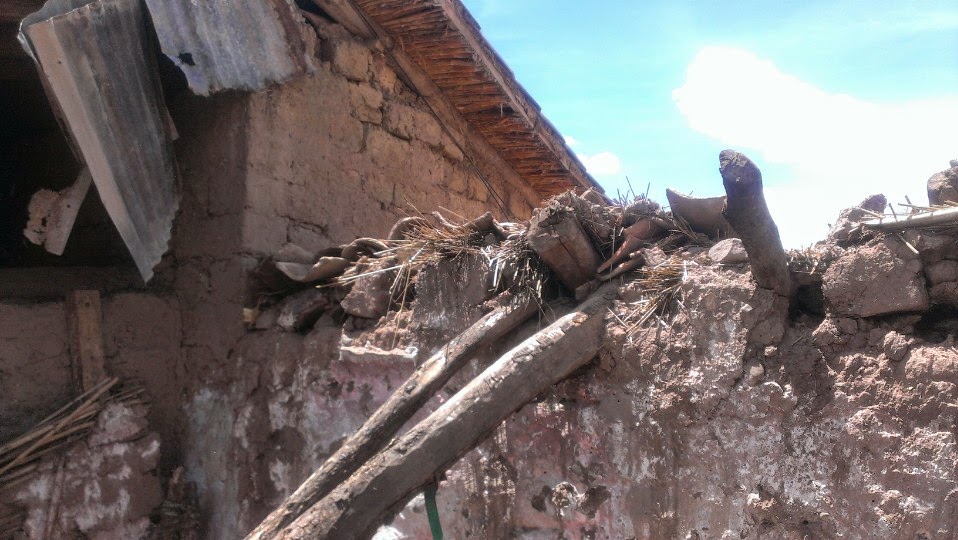 You can see them hauling away old bamboo that was used for the old roof. You can also see the adobe bricks they've made being dried in the sun. Below is a sample of their bamboo construction.